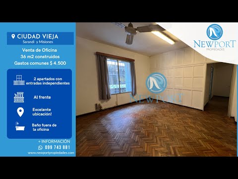 <p>Oficina en Ciudad Vieja sobre peatonal Sarandí, 1 er piso por escalera, cuenta con 2 oficinas con entrada independiente SIN baño. pisos de parquet, rejas en las ventanas, las oficinas tienen en excelente ubicación de ciudad vieja. Gastos comunes bajos!</p><p>Los baños estan fuera de la oficina.<br></p><p>Gastos comunes $4.500</p><p>ACEPTA FINANCIACIÓN DIRECTA </p><p>Medidas : Recepción 2,87 x 2,28 // Oficina uno  1,09 x 3,66 // Oficina dos 4,05 x 4,29 </p><p><br></p><p><br></p><p><br></p><p><br></p><p><br></p><br>        <br>